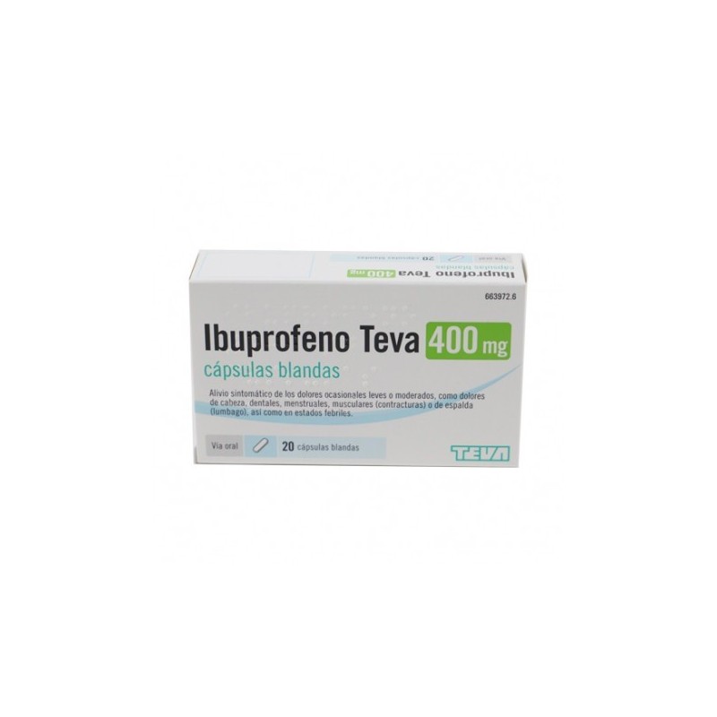Ibuprofeno Teva 400 mg está indicado en el alivio sintomático de los dolores ocasionales leves o moderados, como dolores de cabeza, dentales, menstruales, musculares (contracturas) o de espalda (lumbago), así como en estados febriles.