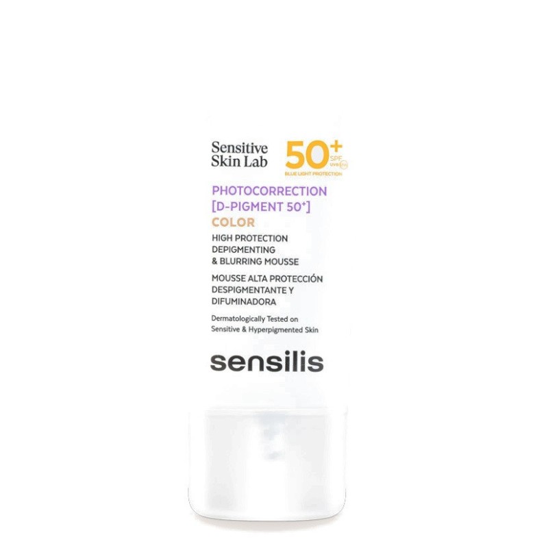 La primera mousse con SPF50+ que protege frente al UVA, UVB y la luz azul y corrige manchas en pieles sensibles hiperpigmentadas de cualquier edad.